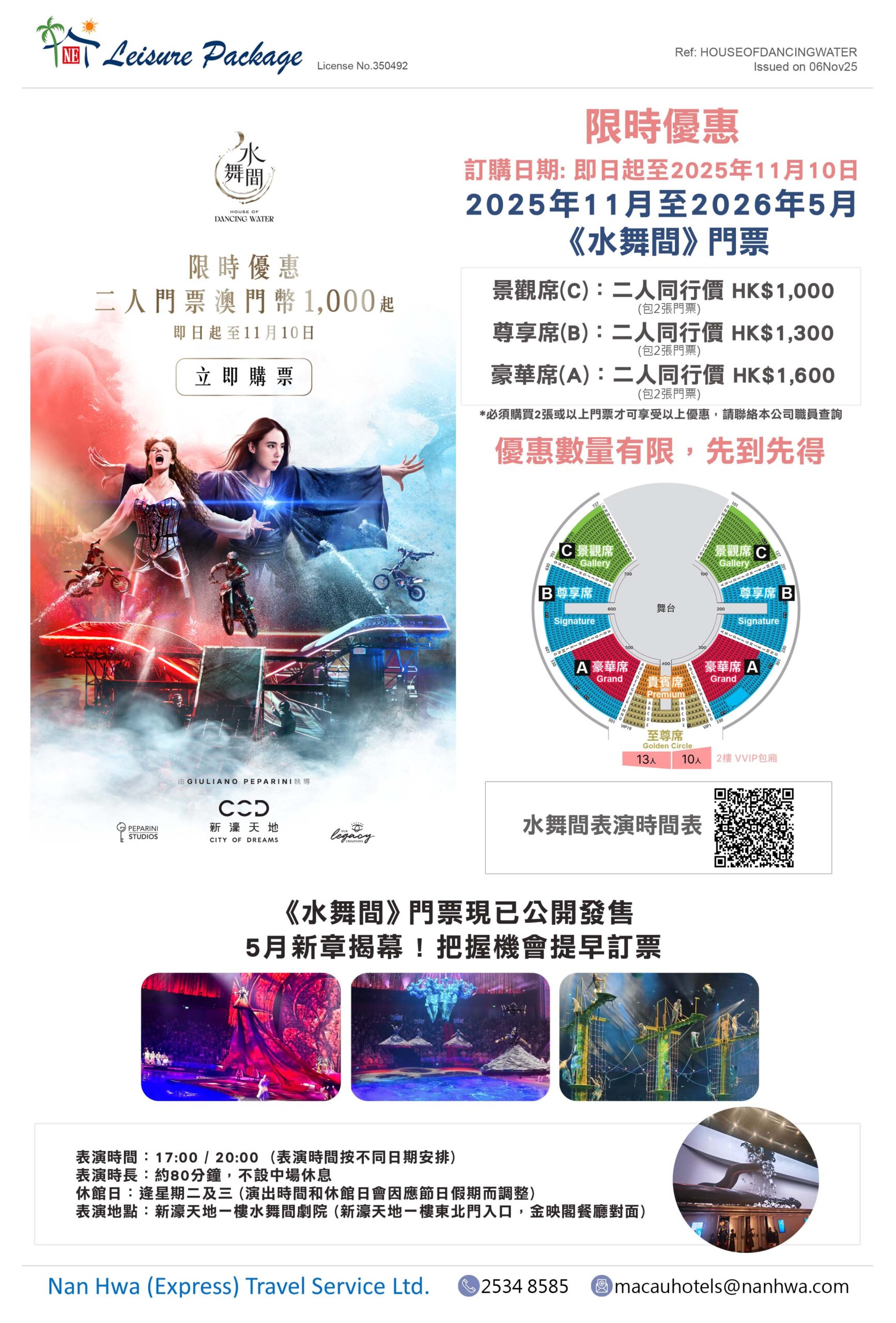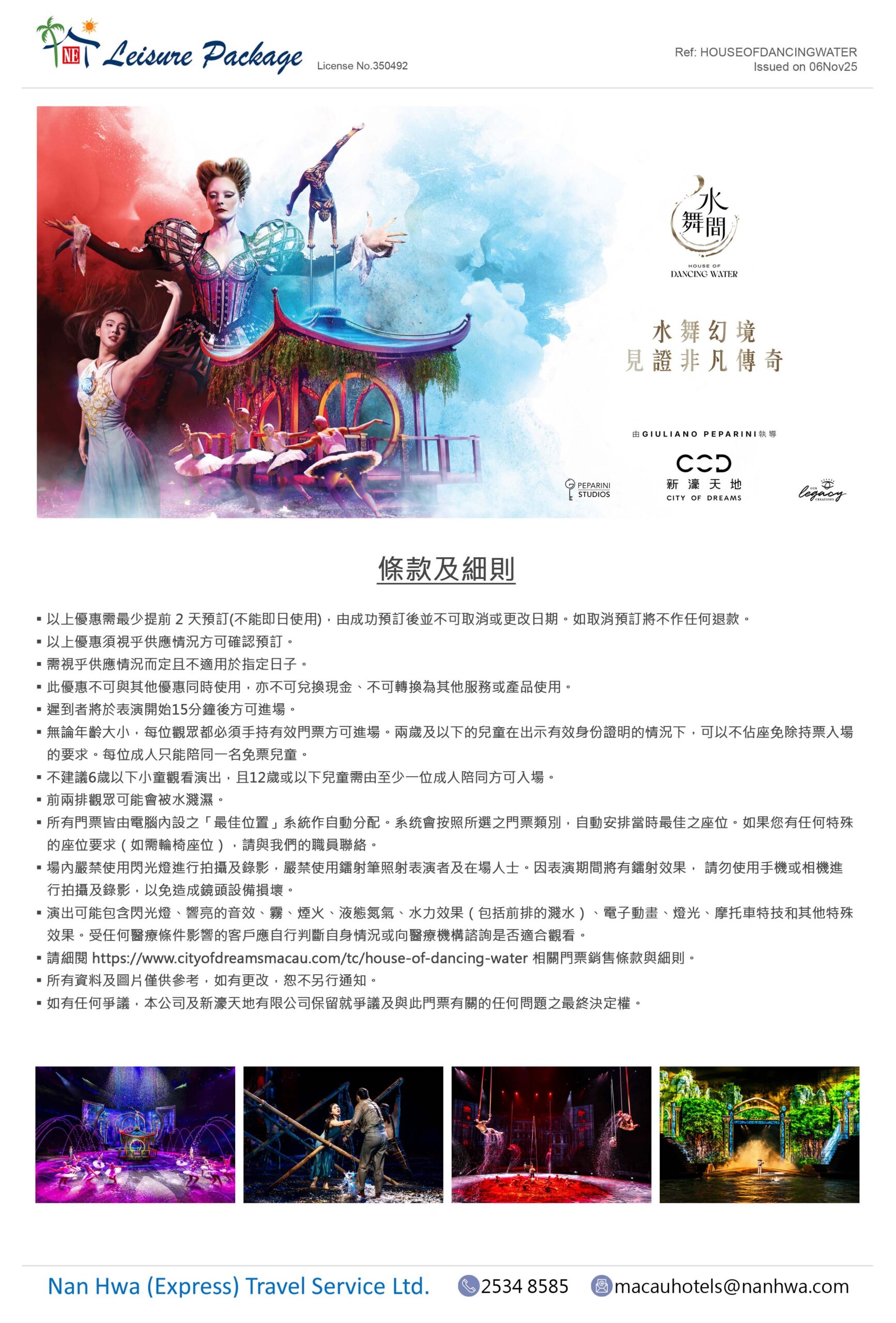 ■ 請細閱 https://www.cityofdreamsmacau.com/tc/house-of-dancing-water 相關門票銷售條款與細則。