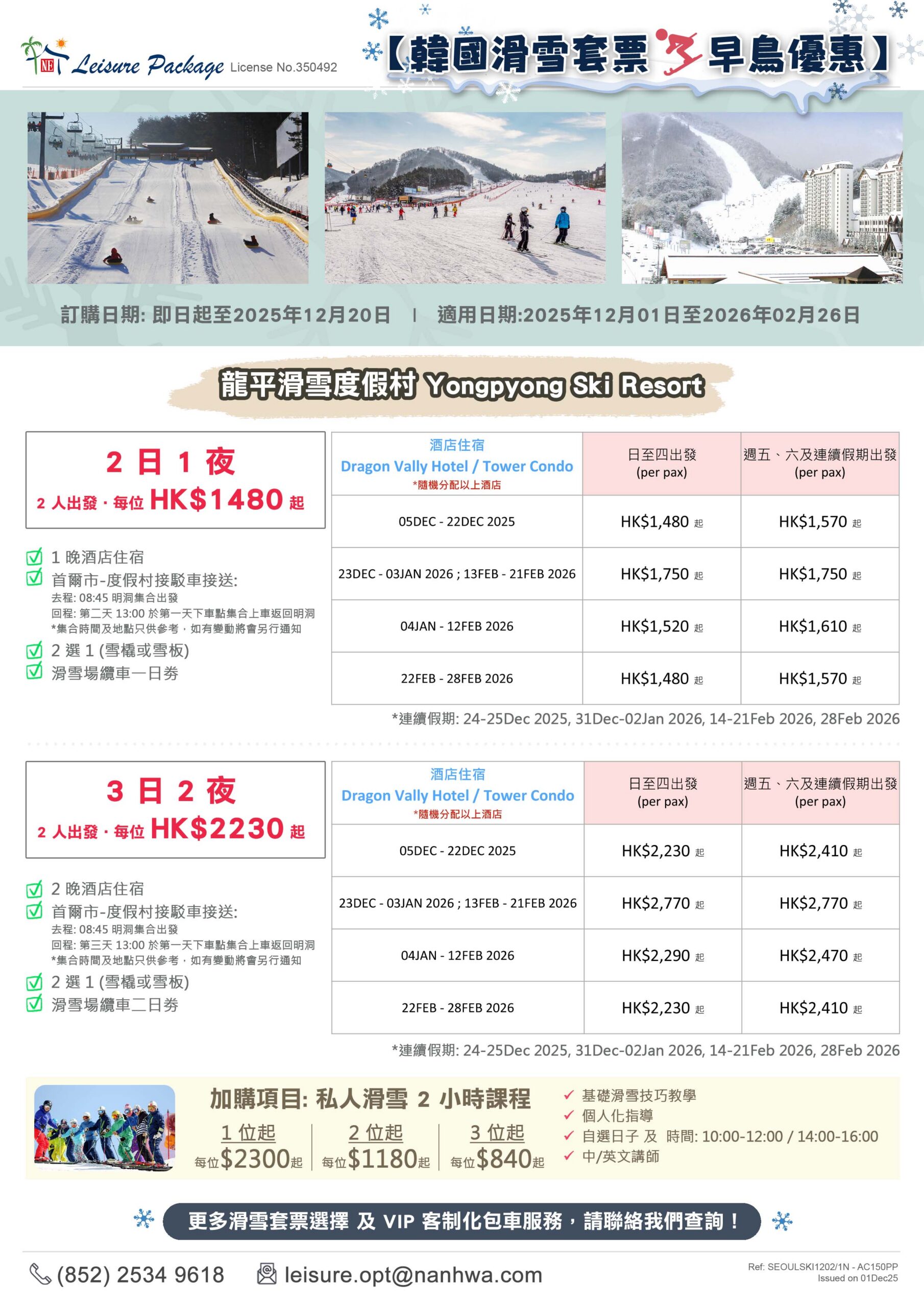 【韓國滑雪套餐 • 早鳥優惠】龍平滑雪渡假村 滑雪度假村 Yongpyong Ski Resort
