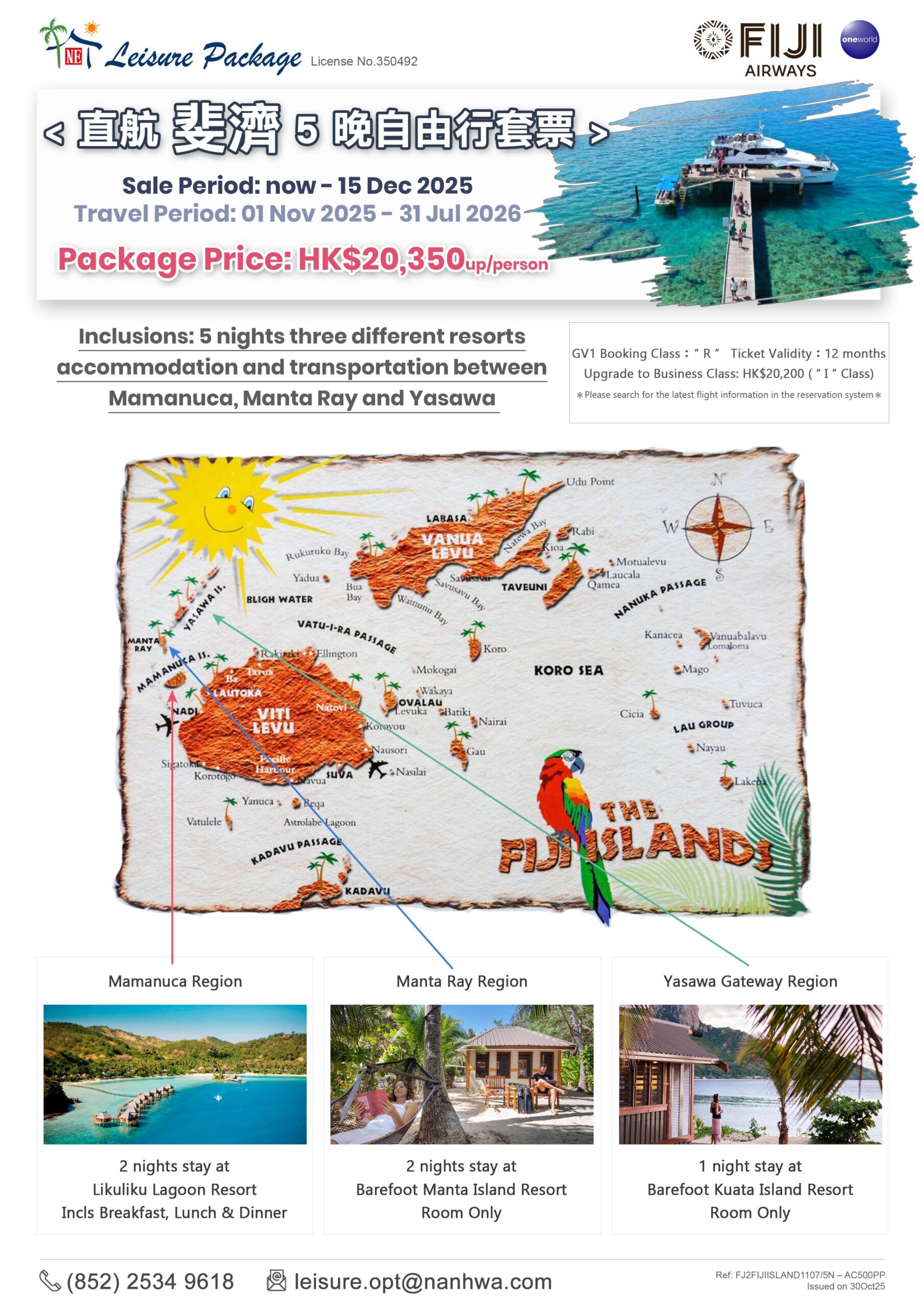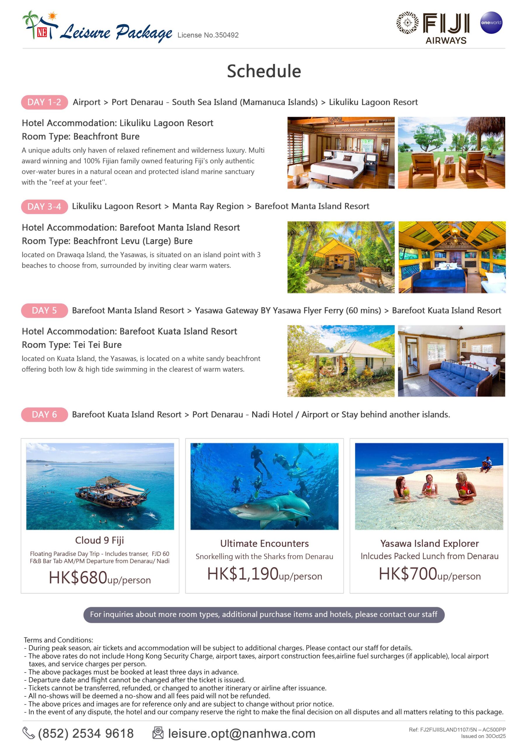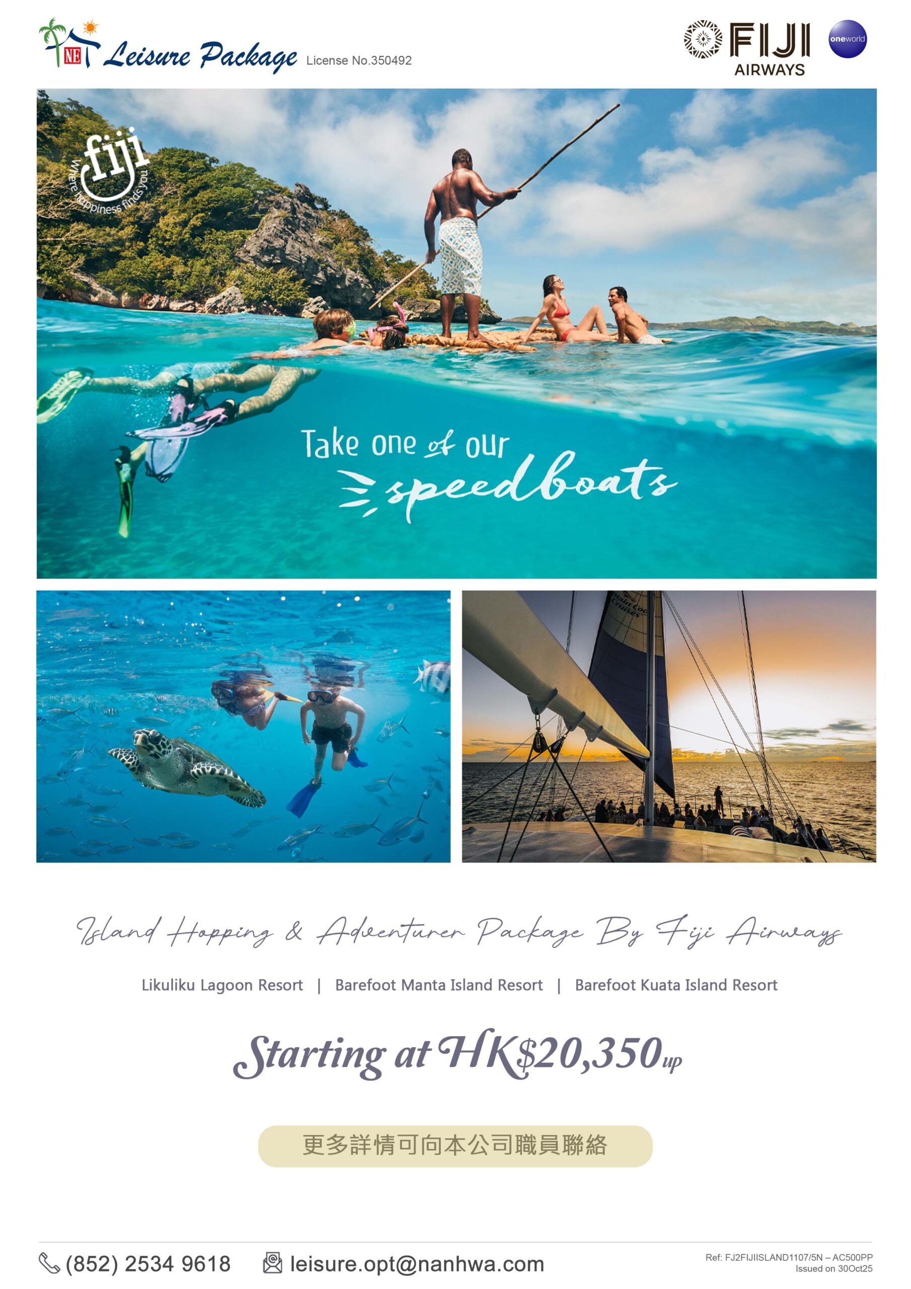 斐濟 · Island Hopping & Adventurer · 5 晚自由行套票 (斐濟航空)