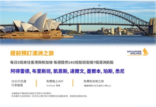 【新加坡航空】提提您🫵提前預訂澳洲之旅🦘, 無論是業務洽談、海外升學、工作假期或是結伴出遊, 新航👉都會為你提供不同目的地選擇。