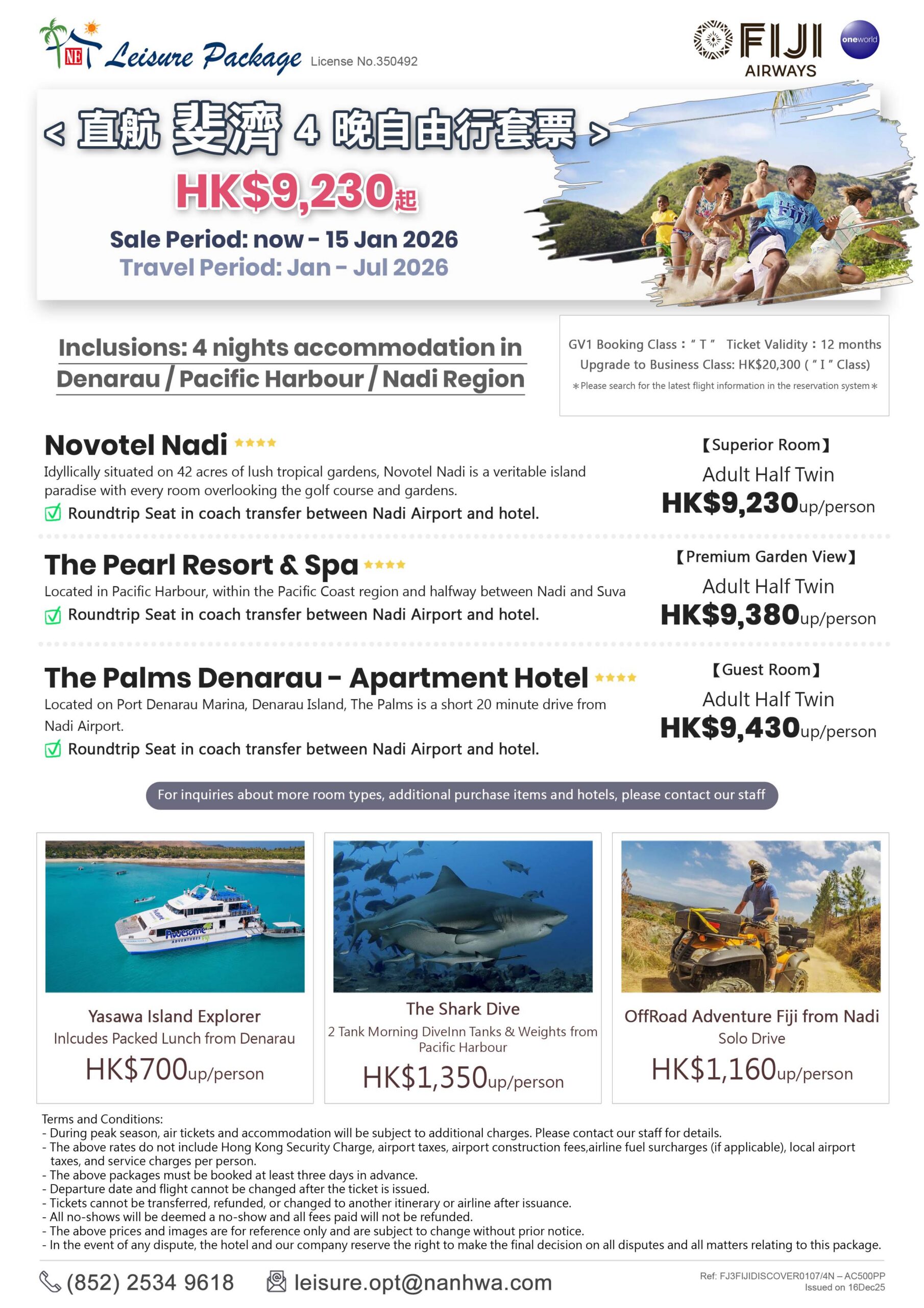 斐濟 · Discover Fiji Package · 4 晚自由行套票 (斐濟航空)