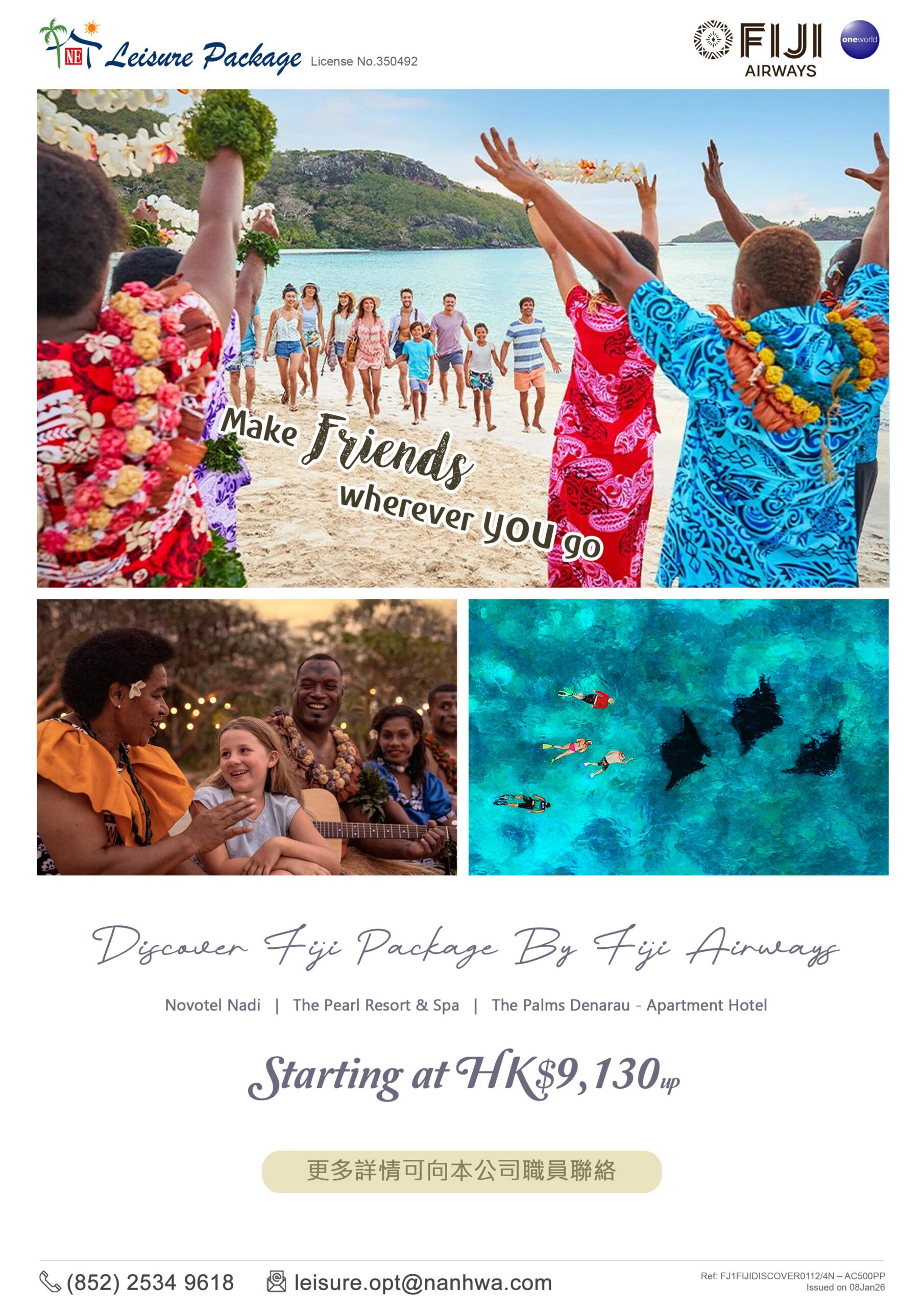 斐濟 · Discover Fiji Package · 4 晚自由行套票 (斐濟航空)